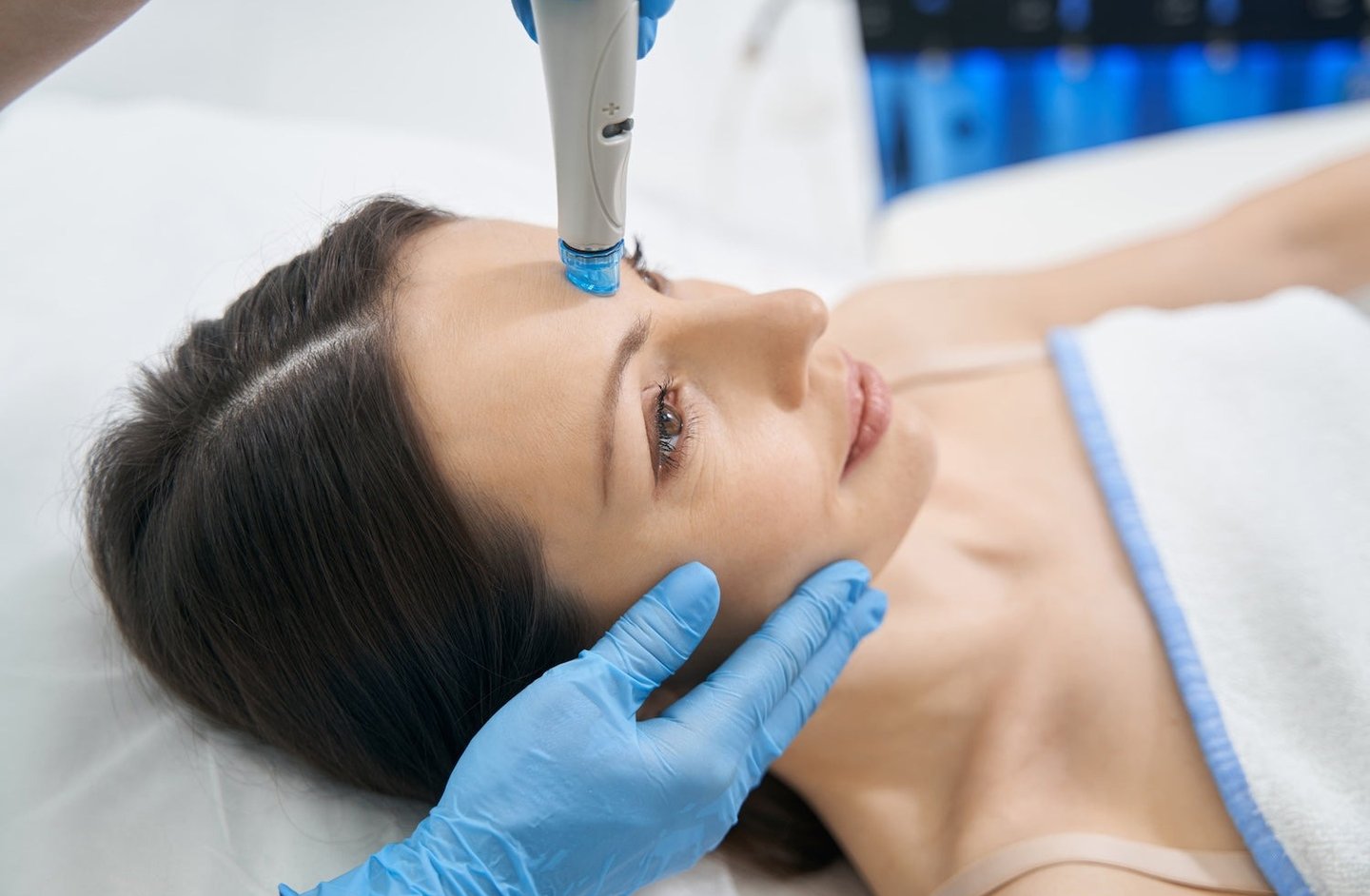 Hydrafacial is a non-invasive, multi-step facial treatment that cleanses, exfoliates, extracts impurities, and hydrates the skin, all in one session.